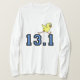 Camisetas corriente y camisetas del bebé maratón lindo del polluelo 13,1 del medio para los maratones. Ropa y engranaje para mujer coloridos y divertidos del maratón. Regalos corrientes únicos para las mujeres. Este diseño está disponible en rosa, azul y rojo.
