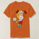 El color es muy bonito al natural, como la foto. El tejido es suave y de buena calidad. Sin defectos en el tintado, ni hilos sueltos o descosidos. Bien la impresión. Los bordes de las letras y el dibujo son nítidos, y el color contrasta muy bien con el de la camiseta.