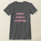 Hacer una declaración con este tee de "Babes Before Nothing", un diseño audaz y empoderador para quienes priorizan la confianza, la amistad y el amor propio. Con una paleta de colores única de inspiración retro y una tipografía llamativa, esta camisa es perfecta para todo aquel que ame la estética vibrante y la energía intrépida. Ya sea que lo estés preparando para una noche fuera, un día casual o una celebración de Galentine, este tee se trata de abrazar tu poder de la manera más sin arrepentimientos