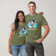 El color es muy bonito al natural, como la foto. El tejido es suave y de buena calidad. Sin defectos en el tintado, ni hilos sueltos o descosidos. Bien la impresión. Los bordes de las letras y el dibujo son nítidos, y el color contrasta muy bien con el de la camiseta.