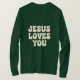 Men's Dark Green Long Sleeve Shirt "Jesus Loves You" Retro Faith