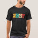 El color es muy bonito al natural, como la foto. El tejido es suave y de buena calidad. Sin defectos en el tintado, ni hilos sueltos o descosidos. Bien la impresión. Los bordes de las letras y el dibujo son nítidos, y el color contrasta muy bien con el de la camiseta.