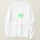 Mostrada en esta camisa blanca básica de algodón de manga larga, esta camisa muestra una palmera verde con un solo ornamento. El saludo dice "Mele Kalikimaka"-hawaiano para Feliz Navidad. Puedes personalizar esta camiseta. Simplemente haga clic en el botón personalizar y elija su estilo de camiseta para mujeres o niños hombres. También puede agregar texto, cambiar el color del texto y el ornamento. O comprar tal cual.