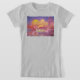 La pared, en la obra original de ZoeSPEAK sobre esta camiseta, es una antigua pared de ladrillo rojo con un mural sobre estuco que se está desmoronando. El mural es una imagen de nubes esponjosas al atardecer, todo rosa y amarillo brillante en la parte superior contra un cielo azul profundo. El mensaje es dejar pasar el sol.