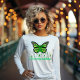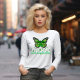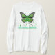 This long sleeve Mental Health tee has a design of green ribbons and a large green Butterfly and the words Mental Health Awareness.