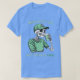 El color es muy bonito al natural, como la foto. El tejido es suave y de buena calidad. Sin defectos en el tintado, ni hilos sueltos o descosidos. Bien la impresión. Los bordes de las letras y el dibujo son nítidos, y el color contrasta muy bien con el de la camiseta.