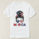 Camiseta Merica Mamá Chica Bandera Americana Messy Bun Hair