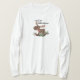 Este majestuoso alce es adorable con un arco de cinta roja atado alrededor de su cuello. Está parado entre peñones y bayas. El texto de arriba dice "Feliz Chris Moose". ¡Qué camisa tan divertida para las vacaciones!