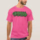 El color es muy bonito al natural, como la foto. El tejido es suave y de buena calidad. Sin defectos en el tintado, ni hilos sueltos o descosidos. Bien la impresión. Los bordes de las letras y el dibujo son nítidos, y el color contrasta muy bien con el de la camiseta.