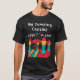 El color es muy bonito al natural, como la foto. El tejido es suave y de buena calidad. Sin defectos en el tintado, ni hilos sueltos o descosidos. Bien la impresión. Los bordes de las letras y el dibujo son nítidos, y el color contrasta muy bien con el de la camiseta.