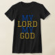 Esta camiseta de mujer muestra las palabras "Mi Señor, Dios" en negrita con letras en azul y dorado en un estilo tipográfico y un tema basado en la fe. Este tee es cómodo, casual y suelto, hecho de algodón al 100%, con el fondo cosido de doble aguja y las mangas para mayor durabilidad nuestros tés encajan y llevan bien en todos y cada uno.