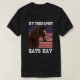 El color es muy bonito al natural, como la foto. El tejido es suave y de buena calidad. Sin defectos en el tintado, ni hilos sueltos o descosidos. Bien la impresión. Los bordes de las letras y el dibujo son nítidos, y el color contrasta muy bien con el de la camiseta.
