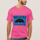 El color es muy bonito al natural, como la foto. El tejido es suave y de buena calidad. Sin defectos en el tintado, ni hilos sueltos o descosidos. Bien la impresión. Los bordes de las letras y el dibujo son nítidos, y el color contrasta muy bien con el de la camiseta.