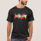 El color es muy bonito al natural, como la foto. El tejido es suave y de buena calidad. Sin defectos en el tintado, ni hilos sueltos o descosidos. Bien la impresión. Los bordes de las letras y el dibujo son nítidos, y el color contrasta muy bien con el de la camiseta.