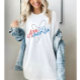 Esta camiseta es perfecta para celebrar festividades patrióticas como el 4 de julio. El diseño presenta la palabra "América" rodeada por un corazón con líneas delgadas y la bandera estadounidense incorporada al texto. Es una manera elegante y cómoda de mostrar tu amor por los Estados Unidos. Fabricado con materiales de alta calidad, esta camiseta es perfecta para cualquier ocasión casual. Úsalo a una barbacoa, desfile o cualquier otro evento patriótico. Está disponible en una variedad de tamaños para adaptarse a todos los tipos de cuerpo. Prepárate para mostrar tu patriotismo con esta elegante y cómoda camiseta.