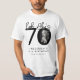 ¡Celebra los grandes 7-0 con estilo con nuestra camiseta personalizable y elegante de 70 cumpleaños! Esta camiseta de diseño limpio juega con una tipografía negra y un fondo blanco clásico para enfatizar el hito que has alcanzado. Incorpora tu foto favorita en el diseño, dentro del cero de '70', para darle un tono personal y memorable a tu fiesta.