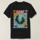 Forma de sello y es rosa y azul. Tiene un código de barras en la parte inferior izquierda y dos flores en la parte superior izquierda e inferior derecha. En medio del sello, hay una obra de arte que representa a dos gatos negros.