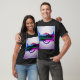 El color es muy bonito al natural, como la foto. El tejido es suave y de buena calidad. Sin defectos en el tintado, ni hilos sueltos o descosidos. Bien la impresión. Los bordes de las letras y el dibujo son nítidos, y el color contrasta muy bien con el de la camiseta.
