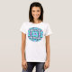 Esta camiseta para mujer blanca tiene el modelo brillante el mirar de imágenes de la bola en ella.