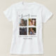 Camisetas de fotos modernas de amigos conmemorativos, con 4 fotos y un texto de plantilla que dice 'EN MEMORIA DE AMOR', un mensaje de plantilla que puede ser personalizado y sus nombres. Todo el estilo de letra, tamaño y color puede cambiarse después de la personalización, haciendo clic en el enlace posterior del personalizar.
