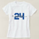 Un bonito estilo de brocha tipografía moderna manuscrita para la palabra "senior". Puedes cambiar los colores blanco y negro de la palabra "senior" para que coincidan con los colores de tu escuela. Los números de 24 años de 2 dígitos de color azul profundo en el fondo son totalmente personalizable en el sistema aquí para que puedas crear tu propio tee de graduación de personalizado.
