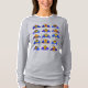 Tee de manga larga en una cuadrícula de 3 x 4 de bellas polillas detalladas en azul y amarillo dorado, con tonos marrones