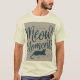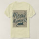 El diseño de la camiseta "Meow Moments" muestra el texto en una fuente divertida y multicolor. Cada letra es de un color vibrante diferente y tiene una textura sutil de la huella de pata, añadiendo un toque de estilo felino.
