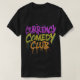 diseño de camisetas con el texto "Currency Comedy Club" en varios colores: