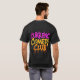 El color es muy bonito al natural, como la foto. El tejido es suave y de buena calidad. Sin defectos en el tintado, ni hilos sueltos o descosidos. Bien la impresión. Los bordes de las letras y el dibujo son nítidos, y el color contrasta muy bien con el de la camiseta.