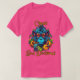 El color es muy bonito al natural, como la foto. El tejido es suave y de buena calidad. Sin defectos en el tintado, ni hilos sueltos o descosidos. Bien la impresión. Los bordes de las letras y el dibujo son nítidos, y el color contrasta muy bien con el de la camiseta.