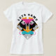 This hand drawn t-shirt has a geometric face design made from bold shapes and vibrant colors like hot pink, orange, turquoise, and black. It’s topped with the phrase “LETS GAME” in a curved arc, making it perfect for gamers, creatives, or anyone who loves quirky, abstract art. The top text is customizable, so you can swap it out for your own phrase, name, or inside joke.