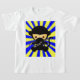 Mono del dibujo animado vestido como ninja con un fondo amarillo y azul brillante. sgb01