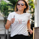 This activewear is a classic women's white basic t-shirt featuring "my world" text in script-handwriting and your initial in a salmon color. Change text and initial using the simple Template provided. To edit and change font style, font color, size, add name and more-- use the Design Tool. Available in sizes S to 3XL and in other various styles and colors. See "About" this product for more information and care.