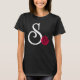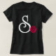 Camiseta Monograma Letra inicial S con rosa roja sobre negr
