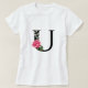 Camiseta Monograma Letra inicial U en negro con rosa rosado