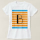 Aquí hay un diseño de 9 bandas en naranja de moda y colores azules. Esta camiseta de mujer blanca se personaliza con tu juego de monogramas en una fuente decorativa. También encontrarás un nombre de personalizable en la franja azul inferior. Por favor, reemplace el nombre predeterminado y el código de monograma inicial por el suyo, o no dude en borrarlos.