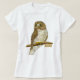 Un ilustracion de un morepork o ruru. Este es un búho, nativo de Nueva Zelanda. Este búho es un ilustracion encaramado en una rama. Pintado en un estilo angustiado.