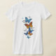 Morfo de mariposa volador, brillante, azul y monarca naranja sobre un fondo blanco. Morfo. Mariposa monarca. Diseño con mariposas.