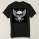 Representación artística intrincada con un diseño con tres cráneos humanos. El cráneo central es acentuado, rodeado de patrones ornamentales abstractos en un tema monocromo, creando una sensación de misterio y elegancia gótica.