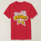 El color es muy bonito al natural, como la foto. El tejido es suave y de buena calidad. Sin defectos en el tintado, ni hilos sueltos o descosidos. Bien la impresión. Los bordes de las letras y el dibujo son nítidos, y el color contrasta muy bien con el de la camiseta.