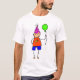 Ilustracion caprichoso lindo de un pequeño muchacho del dibujo animado que va a una fiesta de cumpleaños que lleva su gorra del fiesta y que sostiene su globo. Imagen disponible en los diversos regalos y productos.