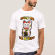 El Maneki Neko (招き猫), literalmente "tentando el gato"; también conocido como acoger con satisfacción el gato, el gato afortunado del gato, del dinero, o el gato de la fortuna. El gato afortunado chino a veces incorrectamente etiquetado) es una escultura japonesa común, hecha a menudo de cerámica, que se cree para traer buena suerte al dueño. La escultura representa un gato (tradicionalmente un Bobtail japonés) que tienta con una pata vertical, y es generalmente exhibir-muchas veces en entrada-en tiendas, restaurantes, salas del pachinko, y otros sectores. Algunas de las esculturas son eléctricas o con pilas y tienen una pata de movimiento lento el tentar. En el diseño de las esculturas, una pata izquierda aumentada supuesto atrae el dinero, mientras que una pata derecha aumentada lo protege. Camiseta