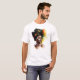 La paleta de colores audaz y dinámico atrapa instantáneamente la vista y crea una sensación de energía y vitalidad. La combinación de amarillo, rojo y verde representa la alegría, la pasión y el crecimiento, lo que provoca una potente respuesta emocional. Los colores combinan maravillosamente las características de la mujer afroamericana, acentuando su fuerza y su radiancia.