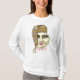 El hombre clásico en la luna de la mujer con oro y marrón sepia. Enfrentado a un cielo estrellado y brillante de noche marrón y crema. La luna de la mujer tiene ojos brillantes y lápiz de labios rosa. Ella lleva pintalabios rosados y un gorra de invierno de punto. Único y caprichoso. La personalización es opcional.