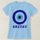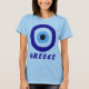 Esta camiseta azul de verano de las mujeres de los ojos malvados griegos es perfecta si eres griega o si amas Grecia. Este diseño presenta un dibujo del símbolo griego de protección ocular con la palabra "Grecia" en tipo de letra a mano alzada.
