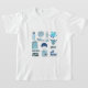 VSCO CHICA WORLD con gráficos azules en la parte delantera. Los gráficos incluyen una cámara, una botella de agua, un rasguño, mochila, zapatos y tortuga.