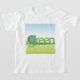 Un globo en la palabra verde formando mundo de tierra verde. Este diseño se ve realmente efectivo en esta camiseta para niños