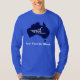 Una simple silueta blanca de un trineo de perro y la Cruz del Sur superpusieron en un mapa azul de Australia. Todo en un fondo estelar. ¿Quién lo hubiera pensado? Mushing boca abajo en Oz. El trineo de perros es bastante popular en Australia. En el Monte Hotham en Victoria hay una gran carrera cada año.