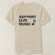Tu afición por "Apoyar la música en vivo" será evidente dondequiera que lleves esta declaración con la camiseta. La gente incluso comentará sobre tu interés de apoyar la música en vivo.