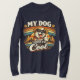 This fun retro-style design features a happy dog wearing sunglasses with vintage sunset stripes and the playful phrase “My Dog Thinks I’m Cool.” The warm retro colors and distressed style create a nostalgic vibe perfect for proud dog lovers and pet enthusiasts. A humorous and stylish design that celebrates the special bond between dogs and their humans with a cool vintage aesthetic.